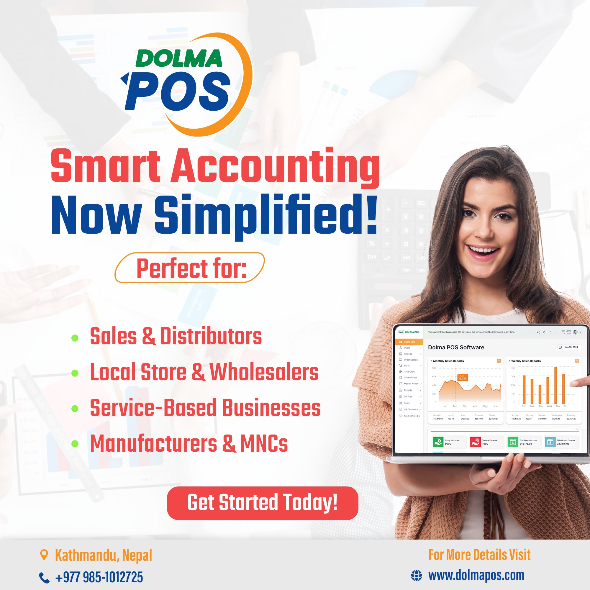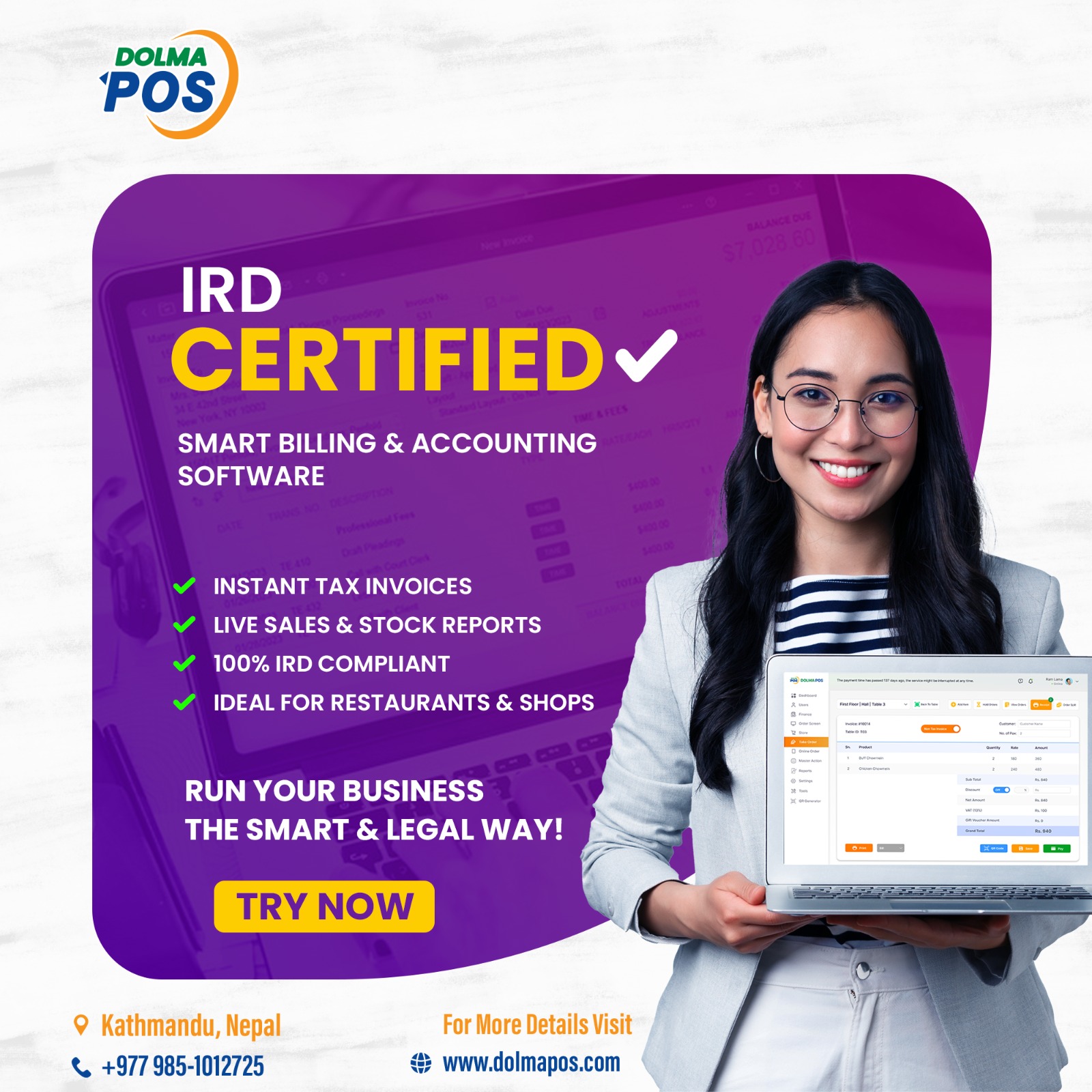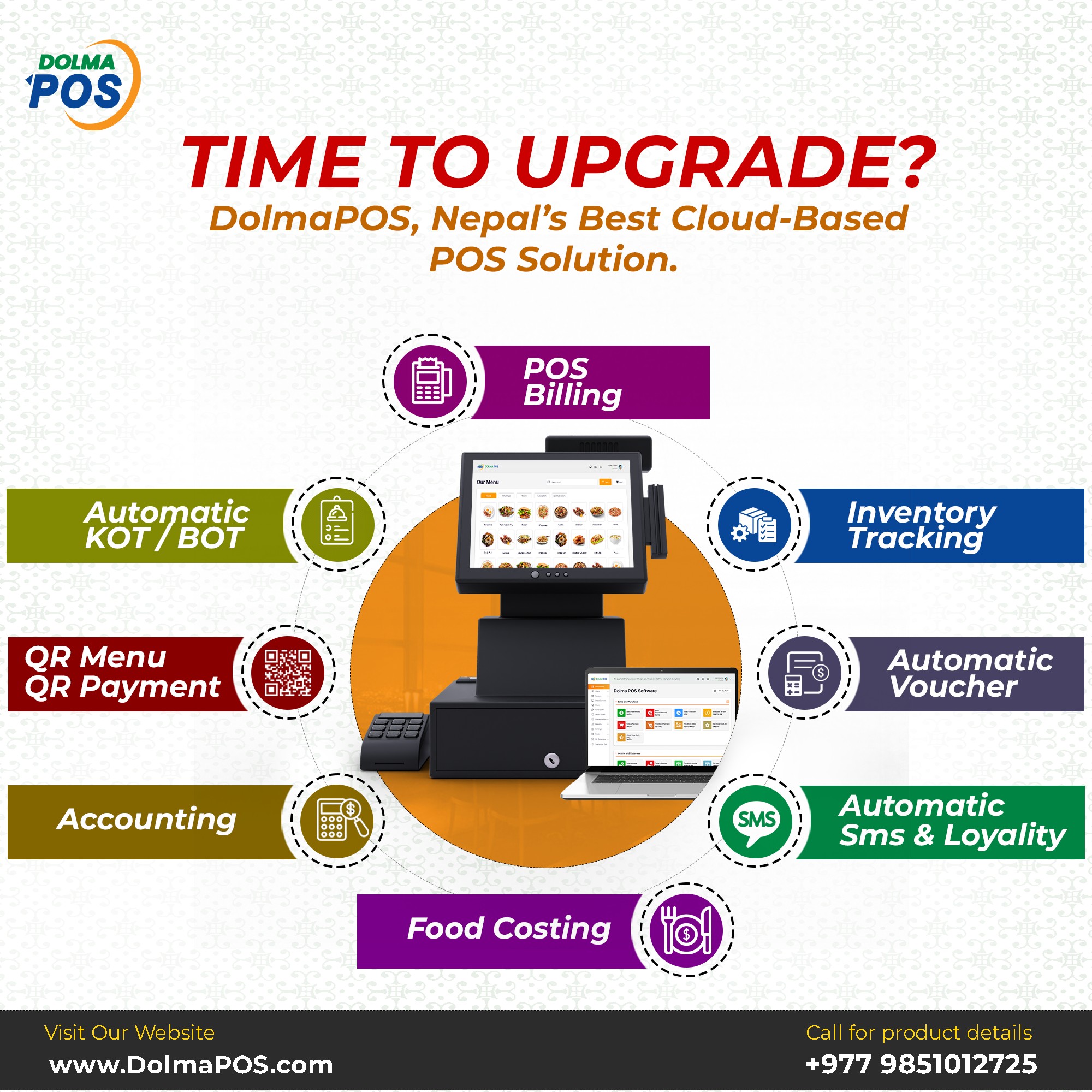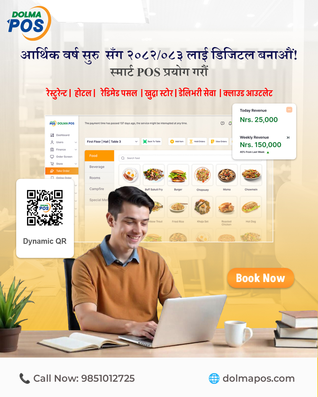 Localized Nepali marketing banner promoting digital transformation for restaurants and retail outlets via smart POS systems.