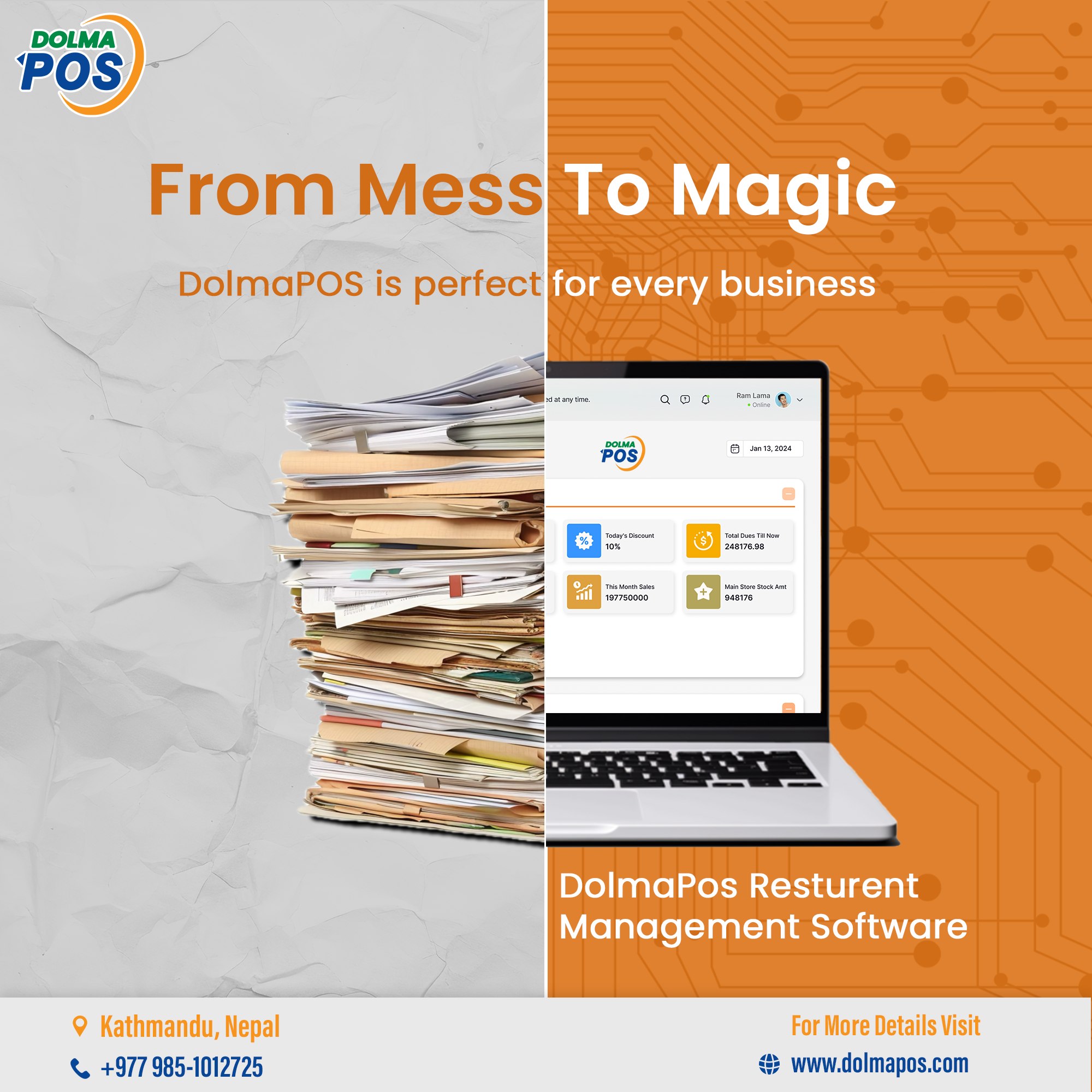 A 'Mess to Magic' comparison graphic illustrating the transition from paper-based chaos to organized digital management.
