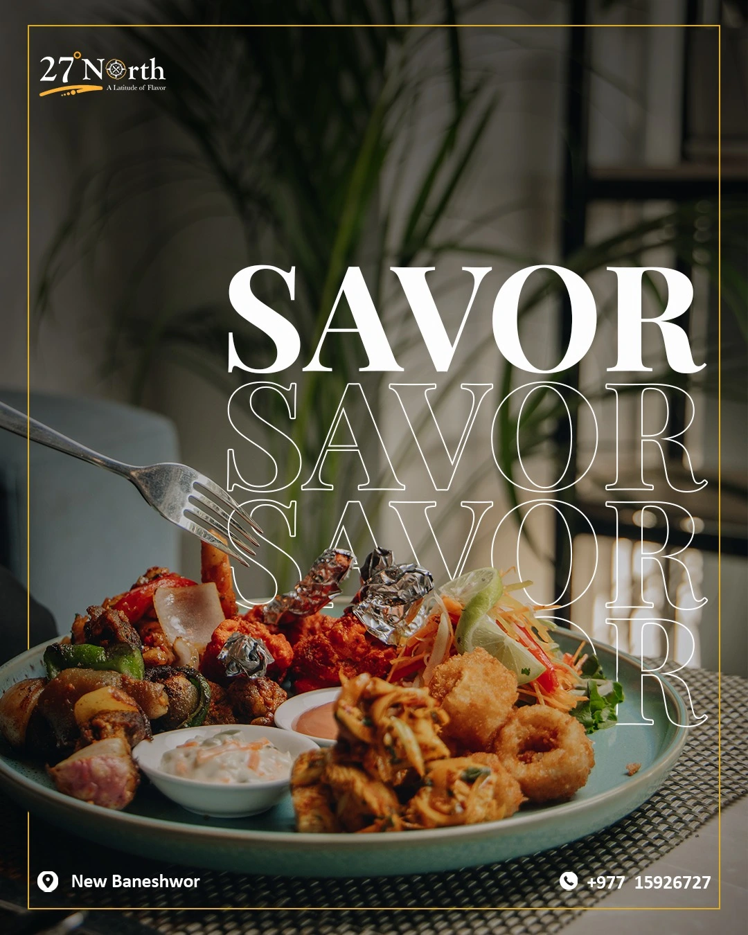 High-impact food menu design emphasizing freshness and "savor" for a boutique restaurant.