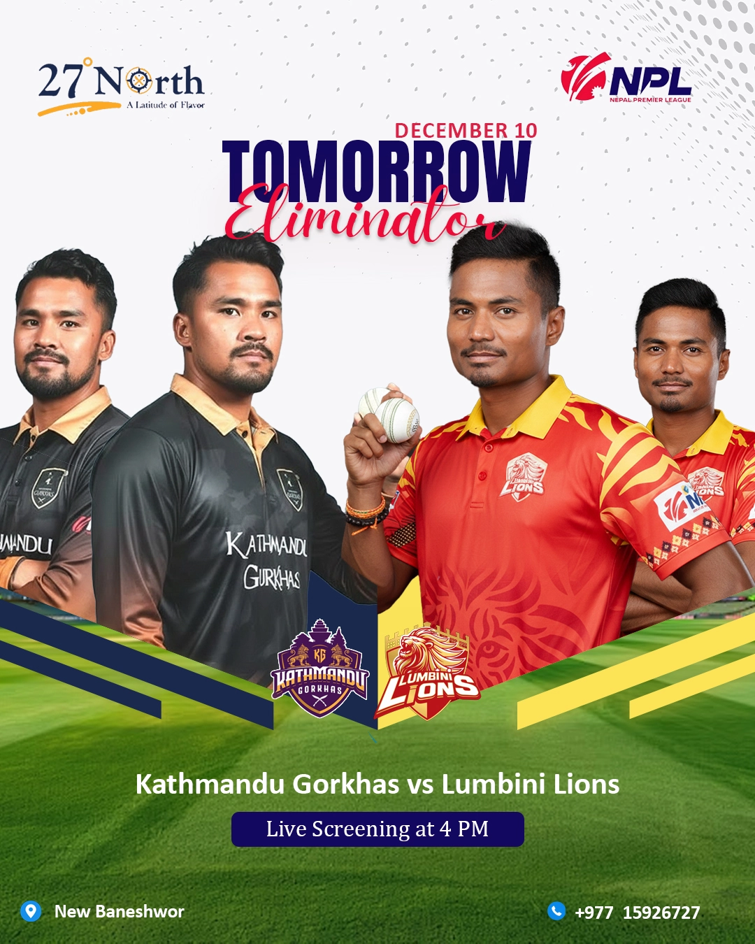 Graphic identity for the NPL Eliminator match between Gorkhas and Lions.